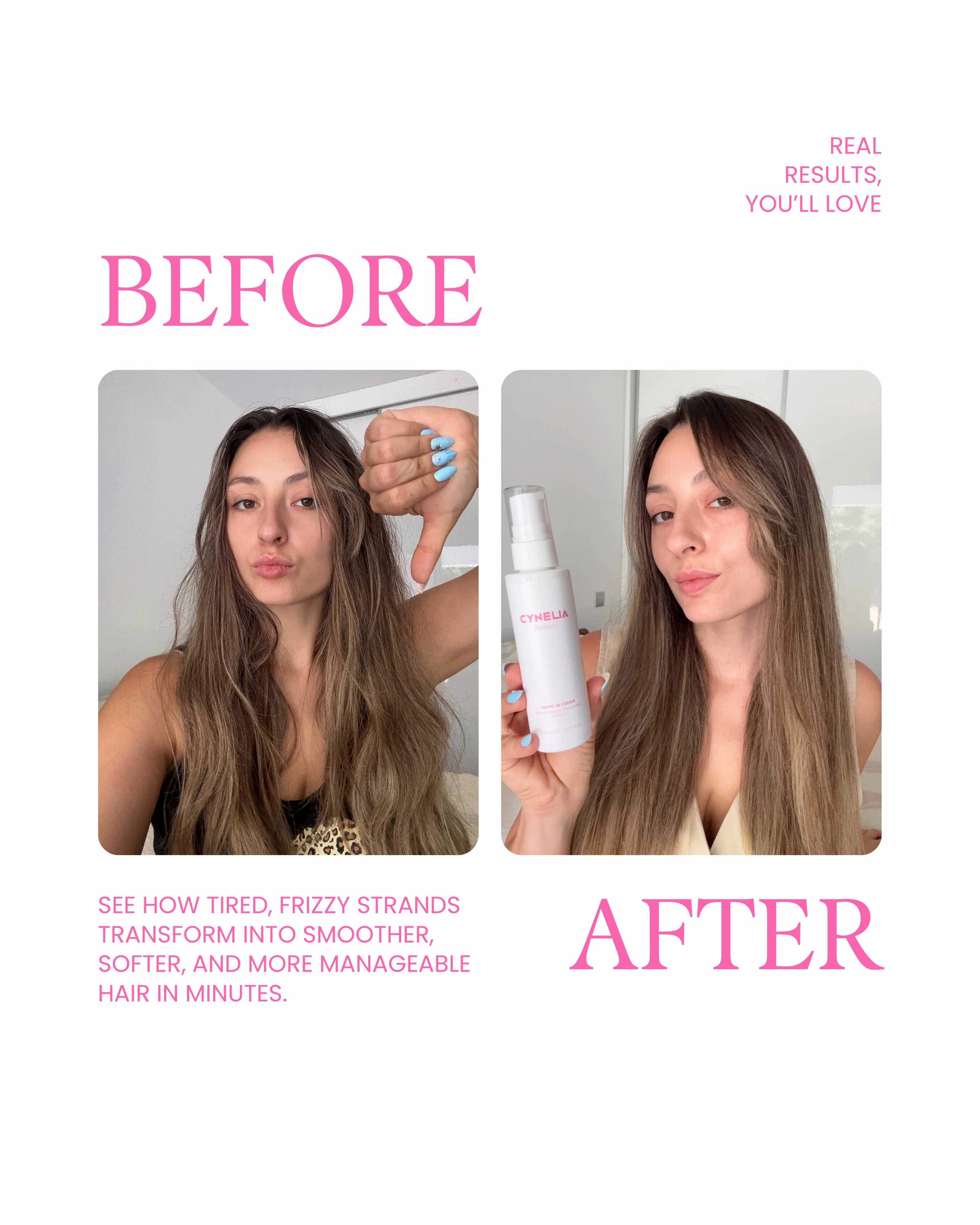 CYNELIA Leave-In Cream is designed to meet every need of your hair, to nourish, protect, and restore its health and shine, without the need for layering multiple products. One simple step, complete care. Because self-care doesn’t have to be complicated, it just has to be meaningful.